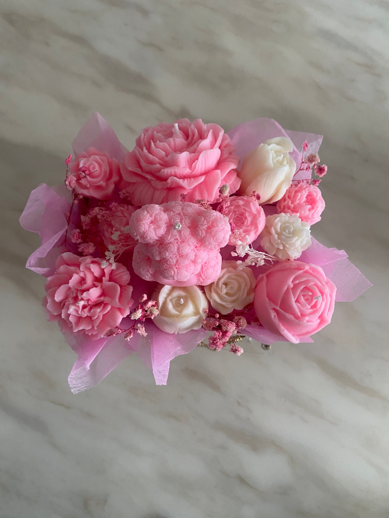 Candle flowers must be burned separately on a suitable heat-resistant surface, while wax melt flowers should be used in a wax burner. This allows the bouquet to be enjoyed safely while preserving the beauty of the remaining arrangement.